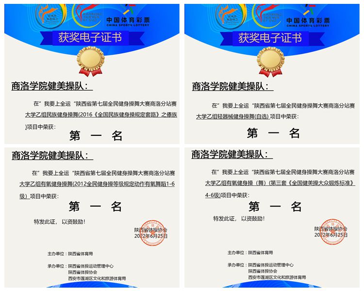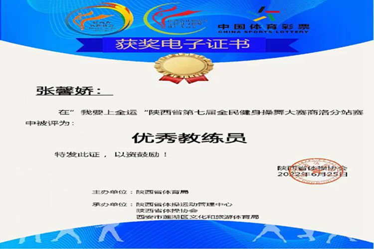 近期,陕西省第七届全民健身操舞线上比赛圆满落幕。开云官网派出由12名学生组建的健美操队参加比赛,分别获得大学乙组民族健身操舞(傣族舞)一等奖、轻器械健身操舞(自选)一等奖、有氧舞蹈一等奖及全国健美操大众锻炼标准(4-6级)一等奖的优异成绩,体育教学研究部教师张馨娇被评为“优秀教练员”。