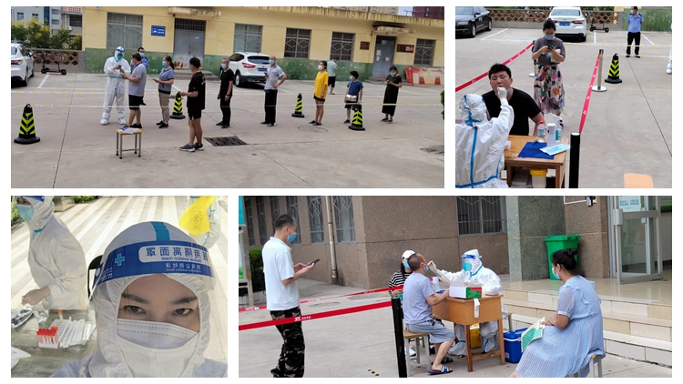 疫情发生以来,党委办公室、后勤保障处主要负责人和相关工作人员日夜坚守在工作岗位上,确保各类信息畅通、防控工作落实到位、校内师生生活保障无忧。校医院任秀梅、阮佳、童娅等工作人员克服家庭困难,每日为校内700余名师生员工和家属进行核酸检测采样。每个核酸采样台每次需要3名志愿者,协助核酸检测扫描和消毒工作。党委办公室和人事处就近抽调校内人员,广大党员职工踊跃报名,教职工张可可、李志超、王旭红、李先勇等60余人分批轮岗,确保每日全员核酸检测采样工作顺利完成。今年暑期天气酷热,协助核酸检测的志愿者每天清晨5点半穿好防护服,一直工作到上午11点。在3、4个小时的高强度工作后,全身都被汗水浸湿。建工学院教师丁少男博士做完志愿工作后,在朋友圈中感慨地表示,“对于很多人来说,只是简单的排队扫码,做一次核酸,对志愿者和检测人员来说,他们要经过千百次的重复!单纯的扫码都可以让全身衣服湿透。力所能及做一点自己的工作,希望这座城早点迎来胜利的曙光!”