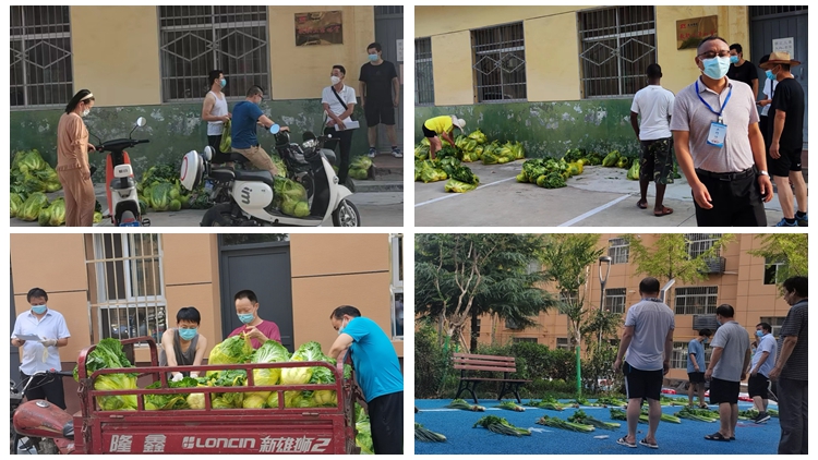 为了协助解决静态管理期间校内教职工生活保障问题,在校党员干部陈炜和王辉积极与东关菜市场商家联系,建立物资采购微信群,收集汇总家属区职工的采购需求,由商家定时送货到家属区门口。汪玉琳、周小婷、刘敦俊、侯德峰、范申民等10余名党员自觉组成志愿者服务队,统一按户数分装,送货上门,确保南院职工足不出户就能收到米面、蔬菜等生活物资。