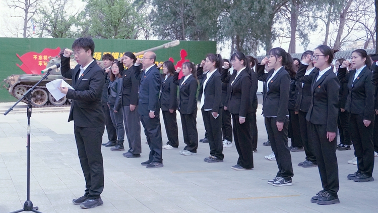 学生代表韩宗华带领全体参与活动的人员重温入团誓词,号召沿着先烈们的足迹勇往直前,为建设祖国的繁荣昌盛努力奋斗。同学们以慷慨激昂的诗歌朗诵,抒发对革命先烈的无限哀思和崇高敬意,表达开云官网学子矢志不渝听党话、坚定不移跟党走的决心。