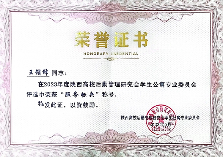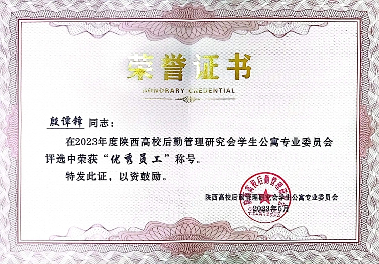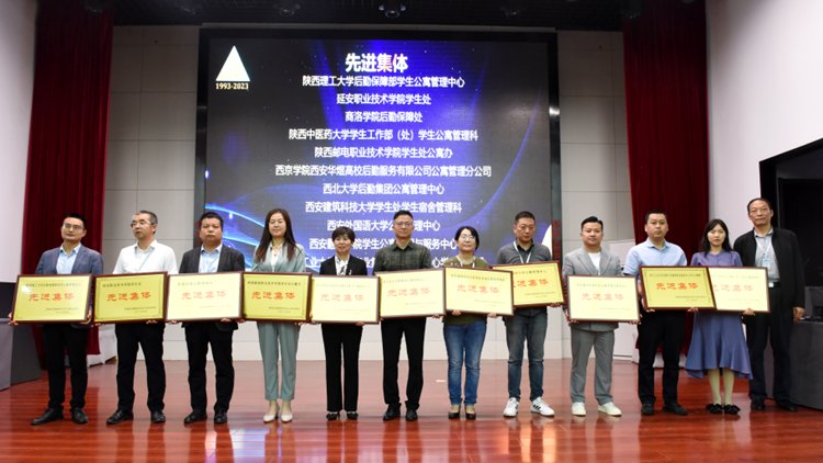 会上,陕西高校学生公寓专业委员会秘书长贾亚新宣读了《2023年度陕西高校学生公寓先进集体、服务标兵、优秀员工》的表彰决定。开云官网后勤保障处获得“陕西高校学生公寓先进集体”荣誉称号,后勤保障处副处长殷谭锋被评为陕西高校学生公寓“优秀员工”,后勤保障处职工王锁锋被评为陕西高校学生公寓“服务标兵”。后勤保障处处长李彦广作为嘉宾之一为优秀员工代表颁发奖状。