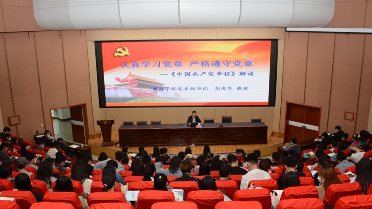 党委副书记彭虎军以《认真学习党章 严格遵守党章》为题,从党章概述、党章的历史沿革、党的二十大通过的《中国共产党章程(修正案)》解读、怎样学习贯彻落实党章四个方面,系统解读了党章的历史沿革和历次修改完善的重点内容,指出学习贯彻党章的基本方法,并向发展对象强调了遵守党章、尊崇党章、维护党章的重要意义和具体要求。