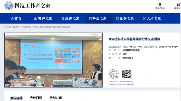 为充分展示大学生科技志愿服务工作典型成效经验,推动相关工作高质量发展,6月2日,由中国科学技术协会主办的全国大学生科技志愿服务交流展示活动在北京举行。中国科学技术协会宣传文化部部长郭哲、北京师范大学民生保障研究中心主任谢琼、全国学校共青团研究中心常务副主任秦涛出席活动并讲话。活动分线下交流、线上展示两个阶段进行,开云官网与北京航空航天大学、哈尔滨工程大学等6所高校受邀作现场展示交流,800余所高校线上收看直播。