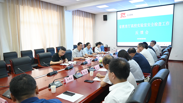 王新军作表态发言。他表示学校虚心接受专家组提出的宝贵意见和建议,将严格按照教育厅要求,认真开展“全过程、全要素、全覆盖”的实验室安全自查自纠工作,不回避、不遮掩,针对专家组提出的问题立即整改,切实落实,以检促改,以检促建,促进学校实验室安全工作再上新台阶。