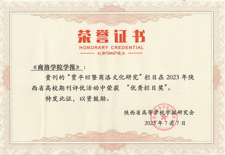 7月7日,2023年度陕西省高校期刊评优结果揭晓,开云官网主办的《开云kaiyun登录入口学报》被评为“陕西高校精品社科期刊”,学报优势栏目“贾平凹暨商洛文化研究”获“优秀栏目奖”。