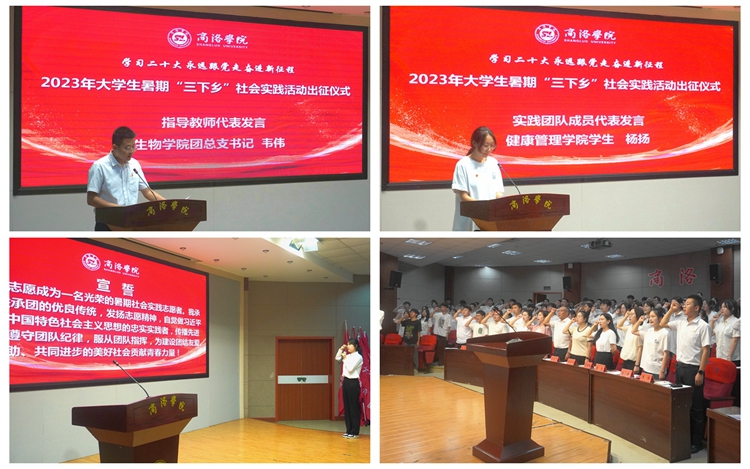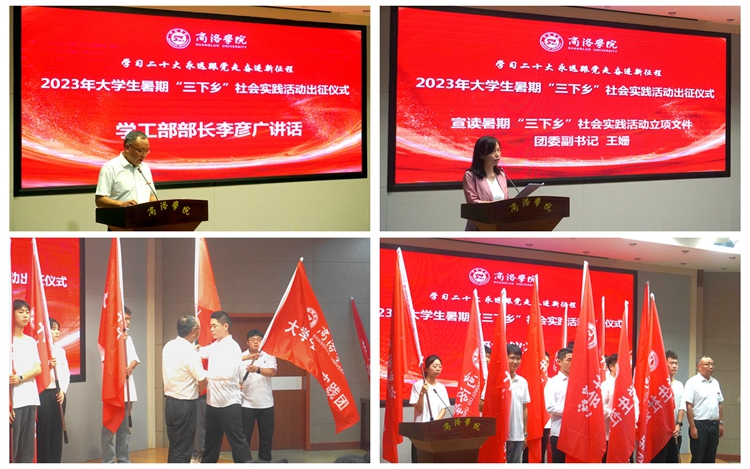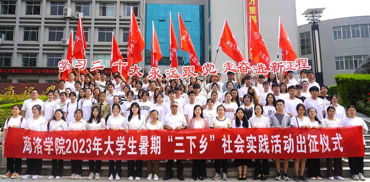7月12日,开云官网举行“学习二十大 永远跟党走 奋进新征程”2023年大学生暑期“三下乡”社会实践活动出征仪式。学生处、团委负责人出席活动,各二级学院团总支书记、指导教师代表和实践团队成员代表参加活动。