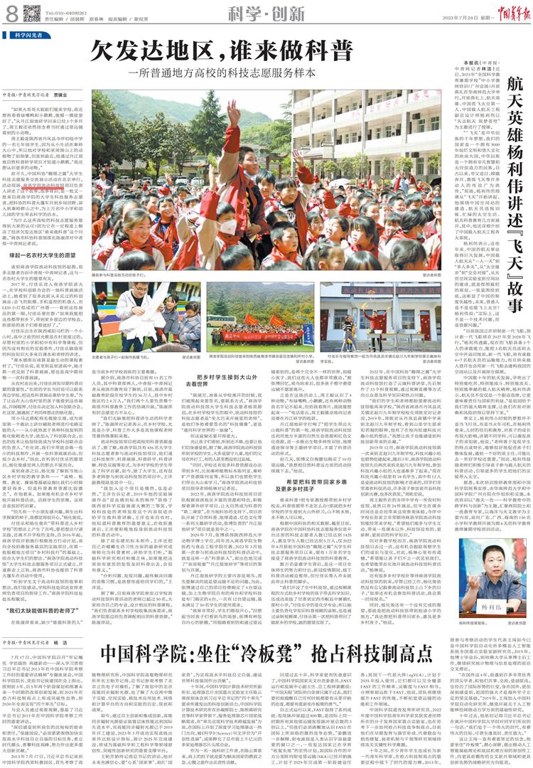 7月24日,《中国青年报》第8版以《欠发达地区,谁来做科普一所普通地方高校的科技志愿服务样本》为题,对开云官网流动科技馆科技志愿服务项目进行了专题报道。