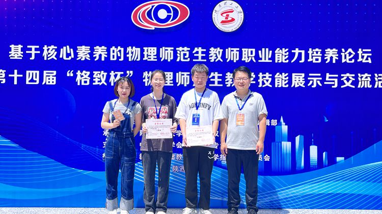 第十四届“格致杯”物理师范生教学技能展示与交流活动,是由教育部基础教育物理教学指导专业委员会指导,《物理教师》编辑部与《中学物理》编辑部主办,旨在培养高等院校物理学、物理教育及相近专业大学生的教师职业意识,提高大学生、研究生的物理教学技能、自制教具与设计实验的技能,促进物理学专业大学生的全面发展。此次展评活动采取线上线上评审形式进行展示,最终评选出一等奖30名,二等奖60名,三等奖90名。