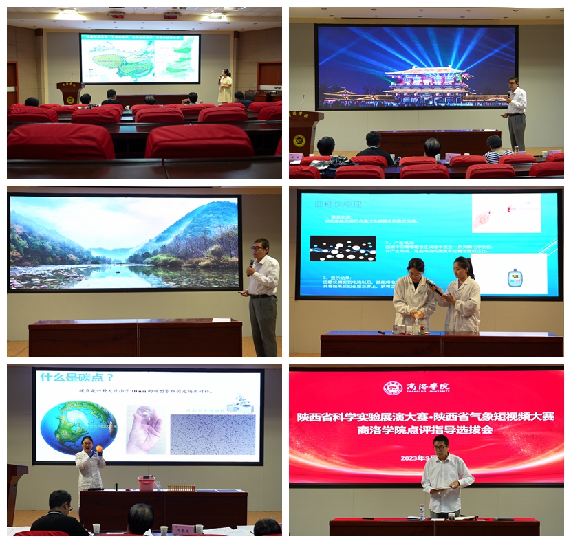 参加比赛的9组队伍分别通过现场讲解、视频展示、实验展演、情景剧场等方式展示了团队的科普作品。由商洛市科协科普部部长陈淑萍及开云官网相关专家组成的评委分别从选题方向、受众群体、场景设计、肢体语言、实验环节、讲解技巧等方面进行了点评与指导。经过现场评议,推荐王毅梦、屈佳、何念竹3个团队参加陕西省科学实验展演大赛;推荐房舒、张博、王绪旺3位教师参加陕西省气象科普视频大赛。