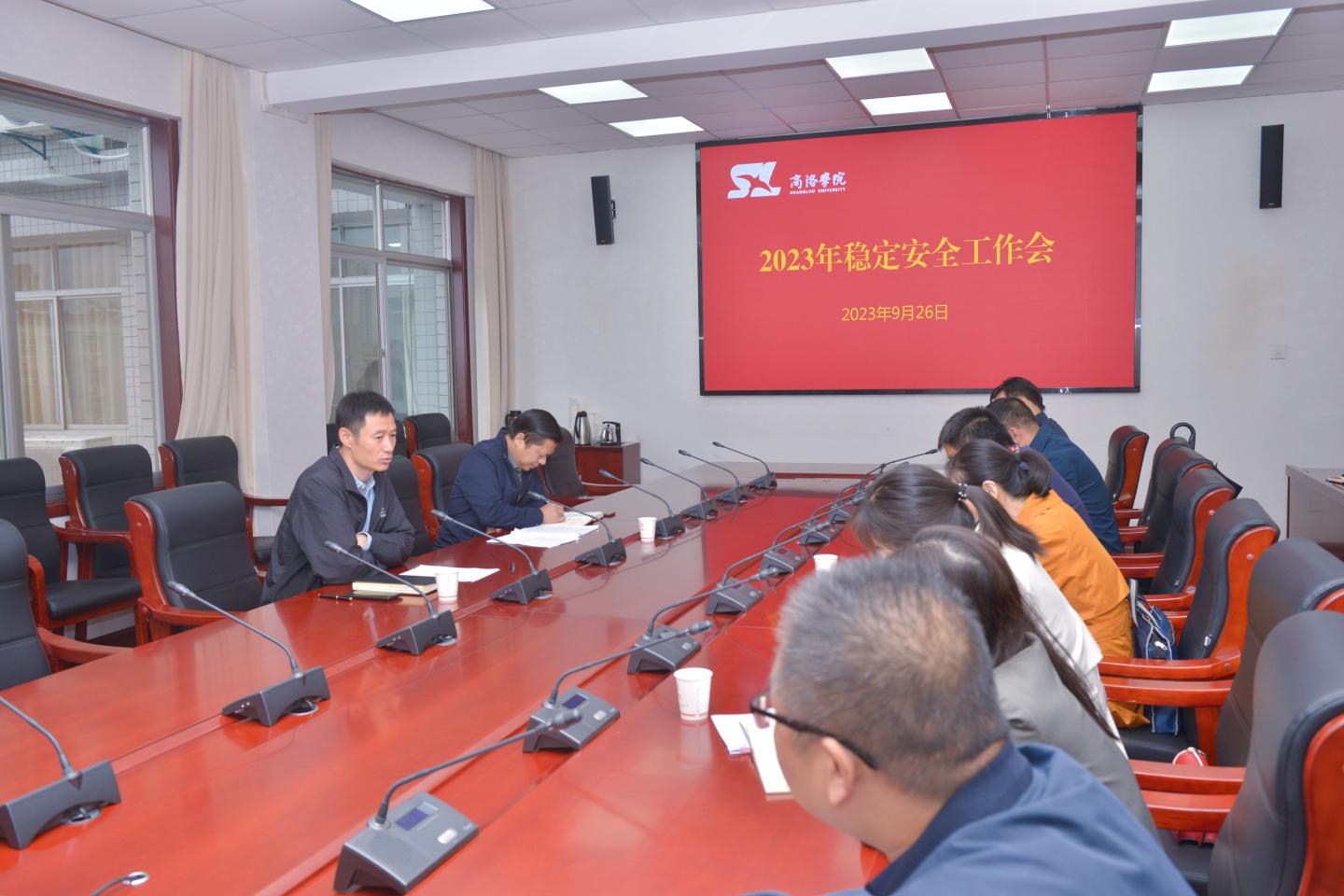9月26日,校党委副书记刘勇主持召开稳定安全工作专题会议,传达省委教育工委、省教育厅关于加强近期稳定安全工作的要求,研究部署开云官网落实措施。党委办公室、宣传部、统战部、人事处、学生处、资产处、保卫处、团委、国际合作与交流处、后勤保障处、信息化建设与管理处相关负责人参加会议。