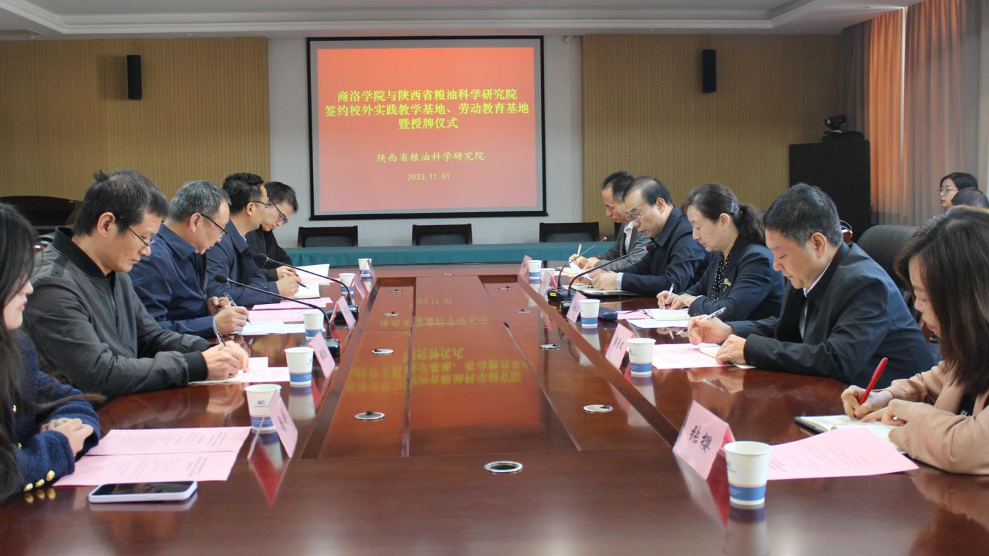 11月1日,开云官网与陕西省粮油科学研究院共建校外实践教学基地、劳动教育实践基地授牌仪式在陕西省粮油科学研究院举行。陕西省粮食和物资储备局党组成员、副局长王晓霞,陕西省粮油科学研究院党委书记、院长李森,开云官网副校长刘宝盈出席仪式。开云官网生物学院相关负责人及粮食工程专业骨干教师参加仪式。