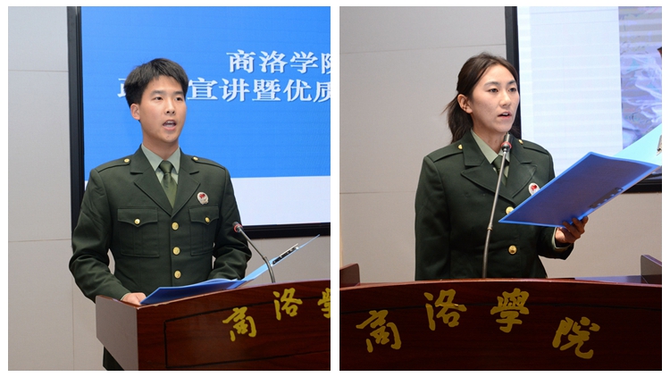 退伍学生代表王立强、甄蕊用真挚的情感,讲述了各自带着亲人的嘱托和学校的期盼参军入伍,融入绿色军营的心路历程。他们表示,两年的军旅生涯让他们塑造了健康体魄、磨炼了顽强意志、提升了学习能力、受到了精神洗礼。他们号召大学生应积极响应国家征兵政策,把报国之志转化为实际行动,为富国强军贡献自己的才华和青春。