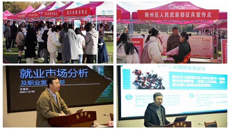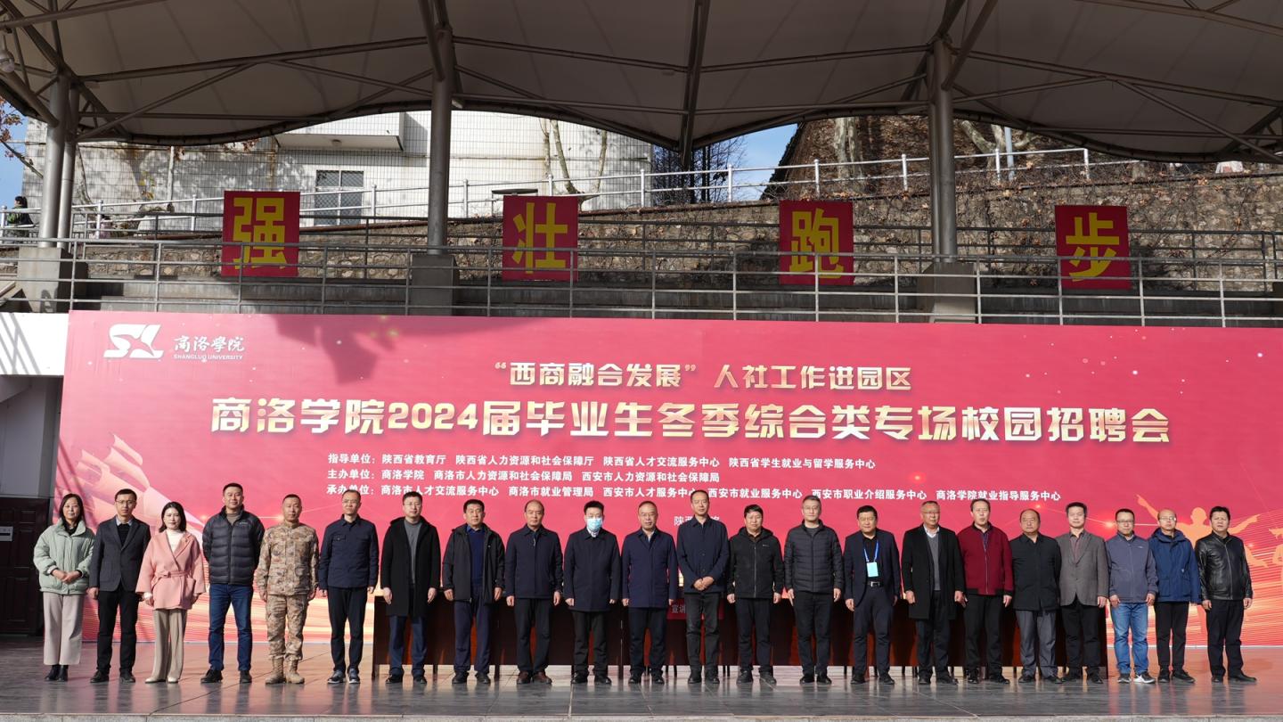 校党委副书记彭虎军,省人才中心毕业生工作部部长朱英杰,西安市人社局党组成员、副局长郑化卫,商洛市人社局党组成员、副局长关威,西安市就业中心副主任任雁庆,西安市职介中心副主任张战仓,西安市人才中心毕业生工作部部长郭梁涛,商洛市人才中心副主任董毅等领导现场指导招聘工作。学生处负责人,各二级学院党委、党总支书记及全体毕业班辅导员参加招聘会并为毕业生提供就业指导服务。