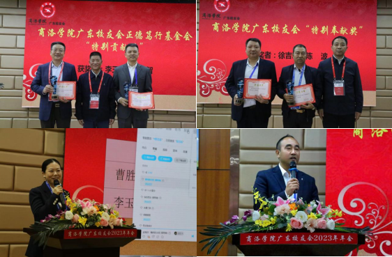 本届年会以“商院情、广东缘、笃行志、事业梦”为主题。活动中,范新会、王新军分别为正德笃行基金会“特别贡献奖”、广东校友会“特别奉献奖”获得者颁发荣誉奖杯和证书,第七届“正德笃行奖学金”获得者代表通过视频方式分享成长感言。王新军为广东校友会荣誉会长黄晴、第三届新任会长冯江博、秘书长査道松颁发聘书。冯江博作了表态发言。
