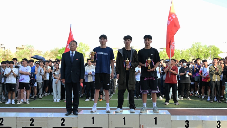 在热烈的掌声中,刘勇、王浩分别为获得体育道德风尚奖和教工组团体总分前三名的学院颁奖,刘宝盈、王新军、郭瑾分别为获得团体总分、男子团体总分、女子团体总分前三名的学院颁奖。