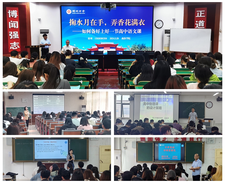 培训活动包含专题讲座和示范课观摩两个环节。刘益涛等5位教师分别以《高中物理课的设计策略》《如何备好上好一节高中化学课》《高中数学课的设计策略》《如何备好上好一节高中语文课》《中学英语好课堂研究》为主题开展专题讲座。结合讲座中提到的教学技巧,5位教师分别为同学们进行了《重力势能》《化学能与电能》《指数函数的概念》《鸿门宴》《Morals and Virtues (Reading and Thinking)》示范课演示。