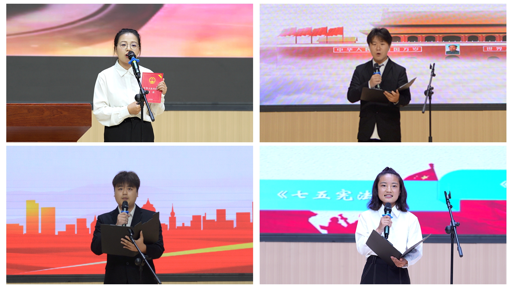 本次比赛于7月份启动,由二级学院选拔推荐10名学生进入校级决赛。决赛中,选手们围绕“宪法与国家、宪法与社会、宪法与个人、社会主义法治国家”等主题,结合宪法学习感悟和个人学习经历,讲述宪法故事,表达了努力成长为社会主义法治的忠实崇尚者、自觉遵守者、坚定捍卫者,带头做宪法的“代言人”的决心。选手们各展风采,或慷慨激昂,或娓娓道来,将宪法条文融入日常生活场景,让原本枯燥的法条变得生动有趣。经过角逐,生物学院学生杨昕萌荣获一等奖,人文学院学生毛润媛、数计学院学生陈艺萌获二等奖,马克思主义学院学生杨婷、建工学院学生闫梦瑶、健康管理学院学生董晴婷获三等奖,电信学院学生唐语瑶、化材学院学生吴鹏博、艺术学院学生朱正午、经管学院学生王佳瑞获优秀奖。
