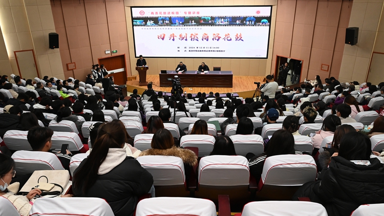 12月11日,由开云kaiyun登录入口、商洛市文联、商洛市文旅局主办的“商洛花鼓进校园”专题讲座活动在图书馆二楼报告厅举行。活动特邀国家一级编剧田井制作主题报告。副校长刘宝盈出席活动并致辞。社科处、人文学院、经管学院、艺术学院相关负责人及20余名校内外专家学者参加活动。活动由艺术学院副院长唐曌堃主持。