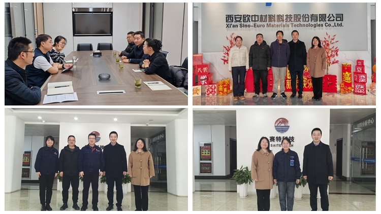 1月20日,化材学院院长曹宝月、副院长刘彦峰率教师团队赴西北有色金属研究院下属西安赛特思迈钛业有限公司、西安欧中材料科技股份有限公司及陕西省“专精特新”企业西部鑫兴稀贵金属有限公司等西安材料领域知名企业开展系列产学研合作交流活动,围绕产学研合作、人才联合培养、学生就业、科技创新、新材料开发、实验室共建、联合开展课题研究、共同申报科技成果奖等问题,与企业深入探讨,达成合作共识。交流结束后,曹宝月一行还看望了在企业工作的优秀校友——金属材料工程专业1102班柳红豆、1202班白佳铭。
