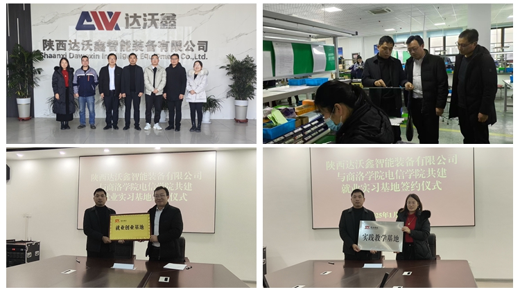 1月14日,电信学院党委书记袁训锋、副书记刘征文、副院长李亚文、学工办主任陈倩一行前往陕西达沃鑫智能装备有限公司走访调研,参观了解企业发展情况和精密滑台生产车间工作,围绕毕业生就业、人才培养、实习实践、产教融合等方面内容与企业深入交流。袁训锋、李亚文分别代表学院同陕西达沃鑫智能装备有限公司签订了就业创业基地协议、校外实践教学基地协议并授牌。