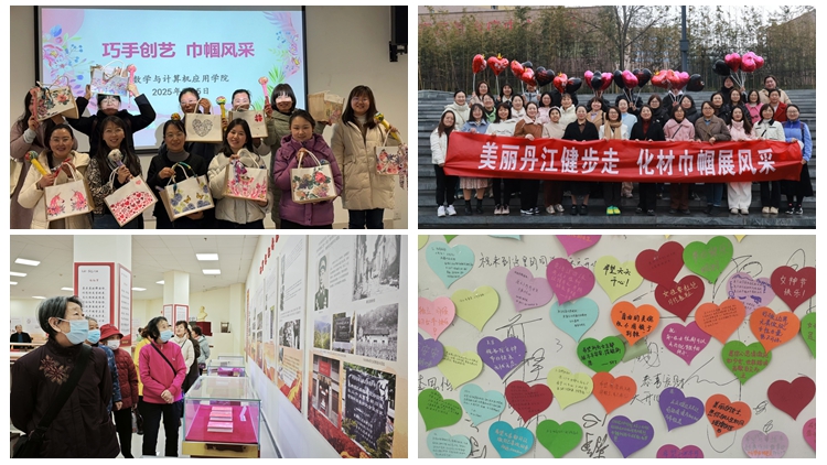 节日期间,校内各二级单位也纷纷举办“巧手创艺巾帼风采”手工DIY制作、“美丽丹江健步走化材巾帼展风采”健步走、庆“三八”校园行、“绽放她力量,共筑心晴空”心灵解压等活动,展现新时代巾帼风采,共同欢庆“三八”国际劳动妇女节。