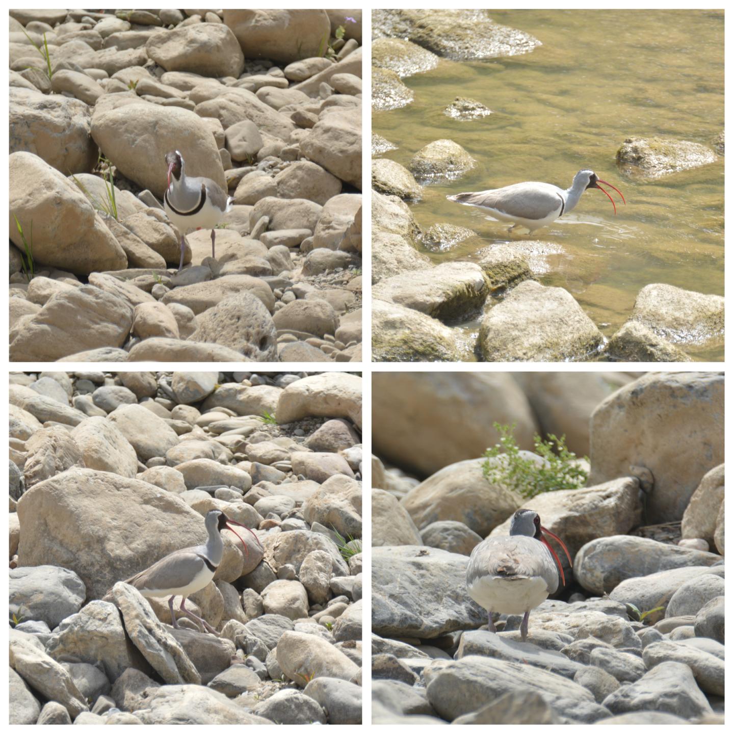 鹮嘴鹬属于鸻形目鹮嘴鹬科鹮嘴鹬属,是单型科单型属(其科下仅有1属,属下仅有1种),因其绯红色弧形长喙与朱鹮相像而得名。鹮嘴鹬生态位狭窄,种群密度低,非常罕见。鹮嘴鹬在中国物种红色名录(2004)中被列为无危(LC),在中国生物多样性红色名录(2015)中被列为近危(NT)。据张博介绍,4月5日下午,调查团队沿山阳县金钱河徒步开展鸟类观测时,偶然间在一个河心石岛中发现了鹮嘴鹬,发现时这只鹮嘴鹬正在石滩中徘徊漫步并持续性高声鸣叫,目测其体长为40厘米左右,毛发颜色和岩石极为接近,调查人员随即用长焦镜头捕捉到了该鹮嘴鹬的影像。调查人员逐步到达河心岛对面时,鹮嘴鹬受到轻微惊吓,其鸣叫变得短促,走动步伐随之加快,调查人员根据其外形和鸣叫方式判断本次发现的是求偶阶段的雄性鹮嘴鹬。
