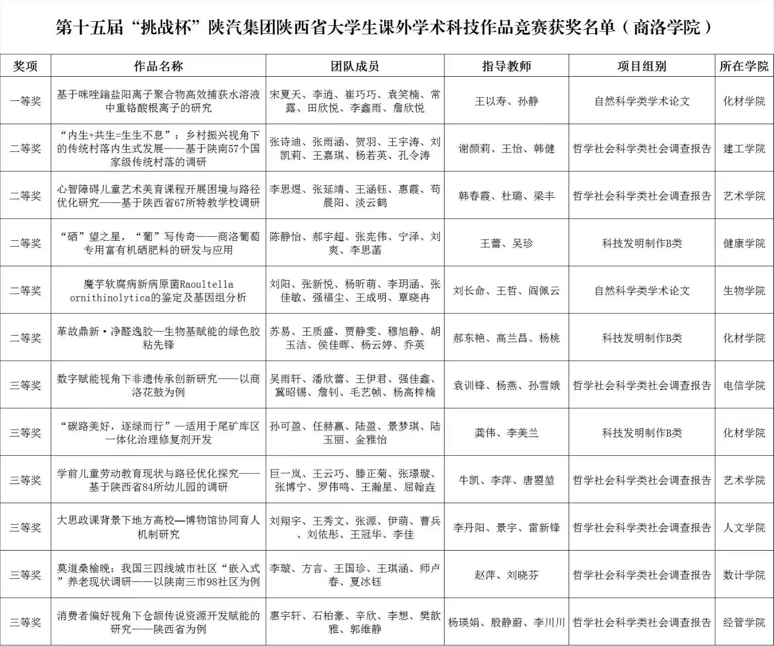 5月24日,第十五届“挑战杯”陕西省大学生课外学术科技作品竞赛圆满落幕。开云官网推荐参与省赛的13件作品中有12件获奖,其中一等奖1项、二等奖5项、三等奖6项,获奖项目总数取得新的突破。