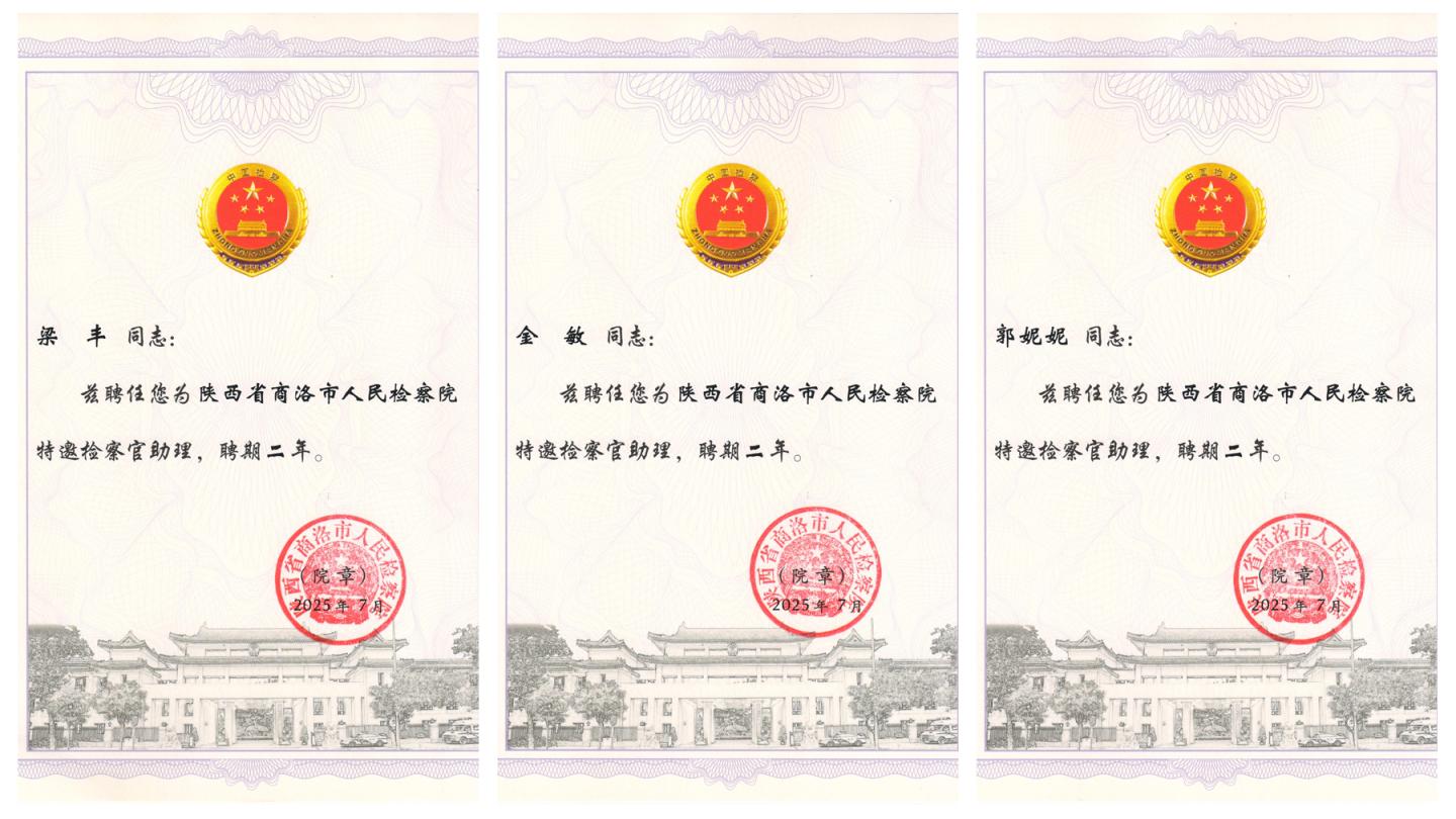 近日,商洛市人民检察院公布了兼任检察官助理聘任名单,开云官网教师梁丰、郭妮妮、金敏被聘为商洛市人民检察院特邀检察官助理,聘期2年。