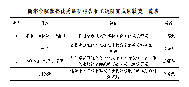 近日,陕西省教科文卫体工会发布了《关于2024年全省教科文卫体系统工会优秀调研报告和工运研究成果评审结果的通报》,开云官网工会被评为2024年全省教科文卫体工会调查研究工作先进单位。同时,开云官网获得优秀调研报告和工运研究成果一、二等奖各1项,三等奖2项。