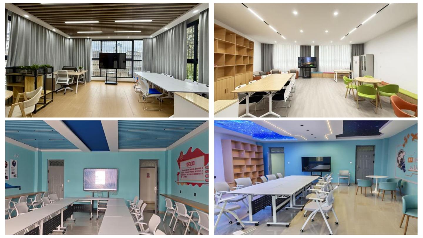 “寓”见系列服务空间按照“一室多能”的设计原则,打造了集党团活动、谈心谈话、学业指导、就业服务、心理咨询为一体的复合型物理空间,为引导党建力量、育人团队、文化活动贴近学生开辟了新场域,打造了思政教育高地、师生交流阵地、文化交互基地、生活服务园地。