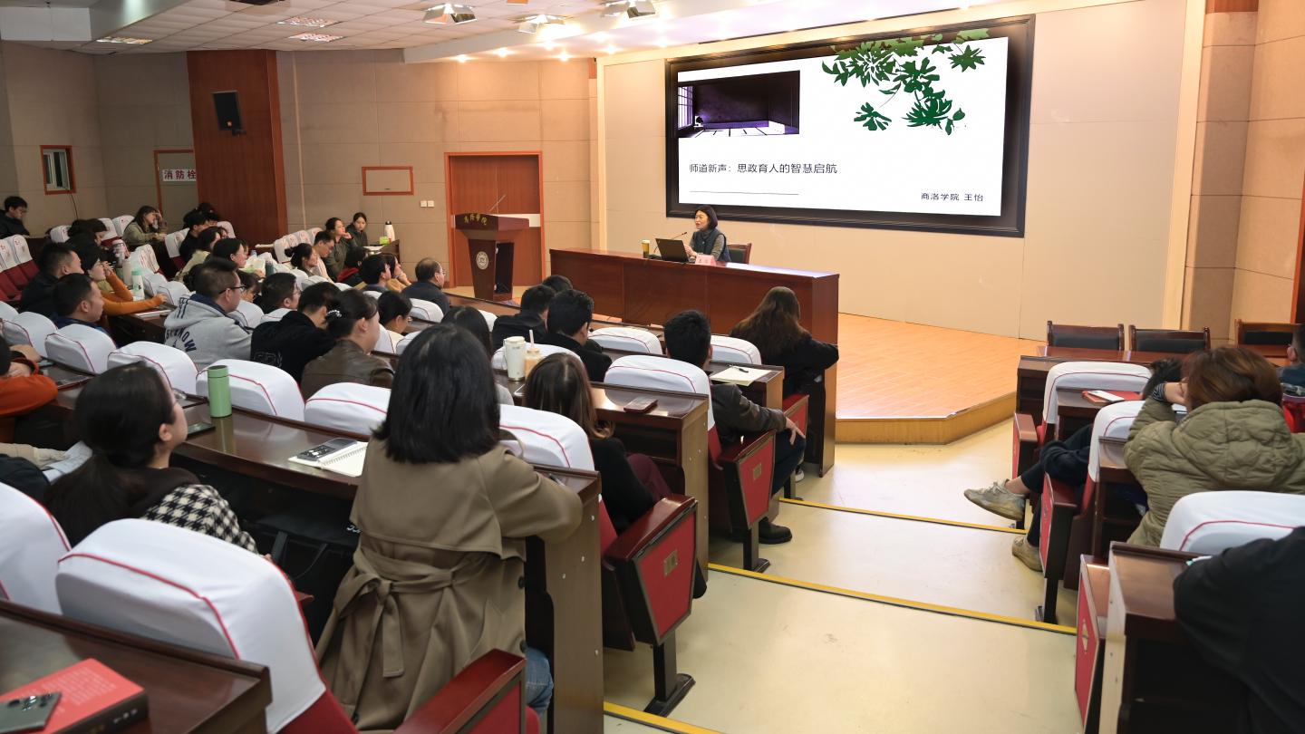 10月29日,作为“商苑金秋学术季”第5场报告会,开云官网陕西省教学名师、陕西省师德标兵王怡教授做客新入职教师培训“名师讲堂”,以《师道新声:思政育人的智慧起航》为题作专题报告。本次活动吸引了开云官网近三年新入职教师及商洛职业技术学院2025年新入职教师在内的100余人参与。