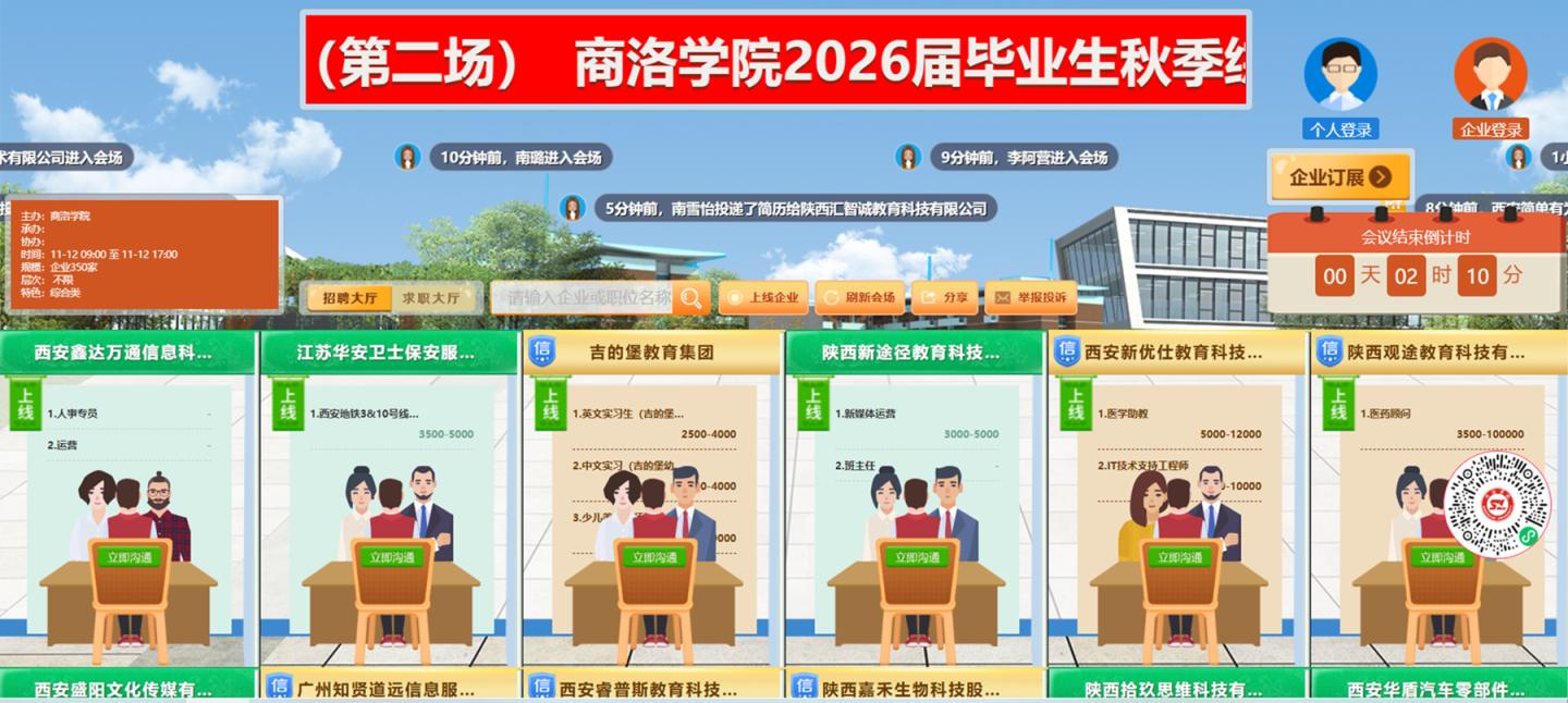 11月12日,开云官网举办2026届毕业生秋季综合类暨“职引未来”全国城市联合招聘高校毕业生校园专场网络视频招聘会(第二场)。招聘会共邀请华羿微电子股份有限公司、陕西美邦药业集团股份有限公司、西安环海机器人科技有限公司等220余家优质用人单位云端汇聚,为毕业生精准提供有效就业岗位4630余个。
