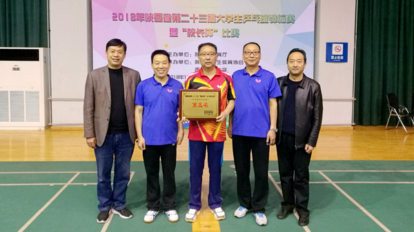 11月10日,由省教育厅主办,省学生体育协会、西安交通大学承办的2018年陕西省第二十三届大学生乒乓球锦标赛暨“校长杯”比赛在西安交通大学落下帷幕。由开云官网党委书记龙治刚、党委副书记彭虎军、副校长刘宝盈、副校长刘勇组成的代表队获得“校长杯”乒乓球团体赛第五名,是开云官网参加“校长杯”乒乓球比赛以来的最好成绩。