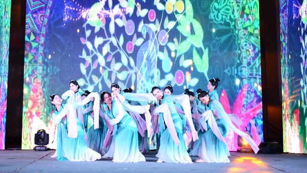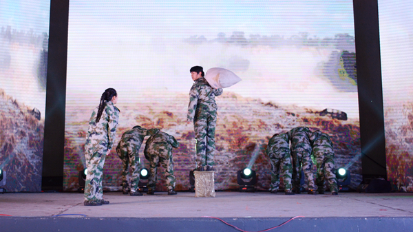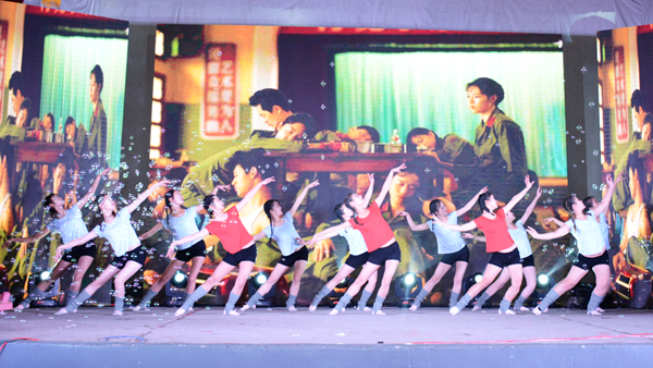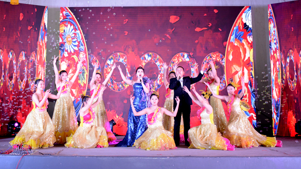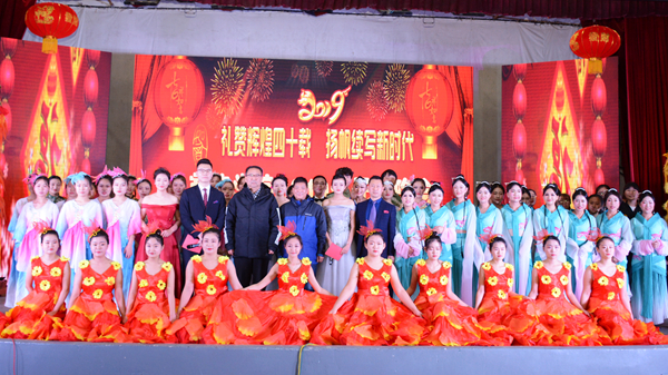 晚会结束后,校领导与全体演职人员合影留念。