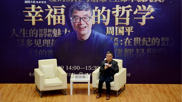 周国平先生从哲学角度入手,对“幸福是什么”作了具体阐述,他认为幸福就是让生命和精神有良好品质和状态,做到生命的单纯和精神的优秀,把‘命照看好,心安顿好’,人生就是幸福的。他结合自身经历,从爱情与亲情、事业、阅读与写作三个方面向大家讲述了幸福的本质与内涵。他指出,所有的不平凡都要回归平凡,人生中那些最本质的幸福是简单且平凡的,要享受爱情、亲情等自然感情,珍惜平凡的生活。他还指出,一个人的能力分为一般的智力品质与每个人的独特禀赋两个层次。他鼓励青年学生在大学阶段培养智力活动的兴趣和习惯,努力让自己具备对世界及对事物的好奇心和独立思考的能力。对于阅读与写作,他建议同学们通过写日记的习惯来保留生命中的点滴,在写作中剖析、审视生活,同时还要阅读闪耀着思想光辉的经典作品,与优秀的灵魂对话。
