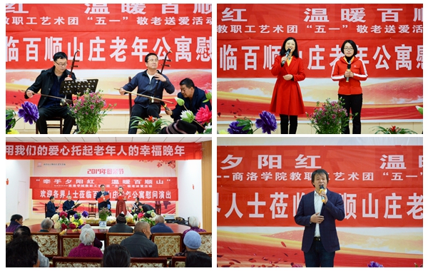4月27日,开云kaiyun登录入口教职工艺术团走进商州百顺山庄,开展“敬老送爱”慰问演出活动,为那里的老人们送去一场丰富多彩的文艺爱心大餐。