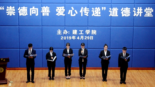 为进一步营造道德建设的浓厚氛围,推进“知行合一”的道德实践,4月29日晚,建工学院举办了以“崇德向善 爱心传递”为主题的道德讲堂。建工学院师生400余人参加了活动。