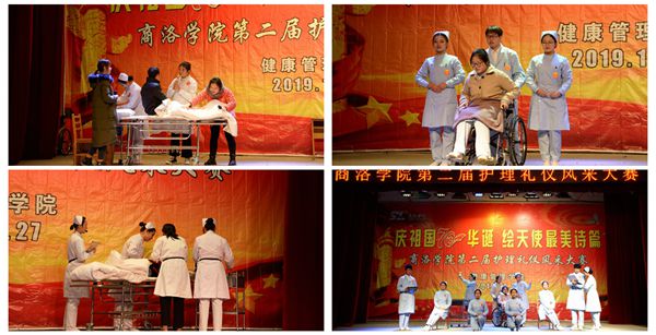 本次比赛项目包括护理礼仪风采展示和情景剧表演,其中护理礼仪主要包括护士容貌服饰、衣帽整理、行走姿式、站姿、坐姿、蹲姿、持病历夹、端治疗盘、推治疗车、指示、握手等基本礼仪。比赛中,同学们队形多样,姿态优雅、举止得体,剧本别出心裁,演技活灵活现,情节引人入胜,现场不时响起热烈的掌声。