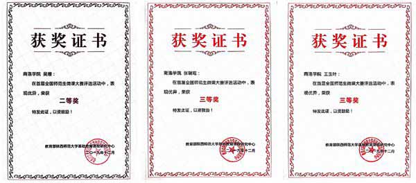 全国师范生微课大赛由西北教师教育联盟主办,旨在进一步推进新媒体、新技术深入应用,促进数字教育资源共建共享,提高师范生信息化教学能力,加快信息技术与教育教学深度融合。参赛学生以教育部颁布的《教师专业标准》和《课程标准》为依据,参考《师范生信息化教学能力标准》要求,充分合理运用各种现代教育技术手段及设备,设计课程,录制短小精悍、生动灵活的教学微视频,记录教师围绕某个知识点或教学环节开展的简短、完整的教学活动,并配套提供教学设计文本、多媒体教学课件等辅助材料。