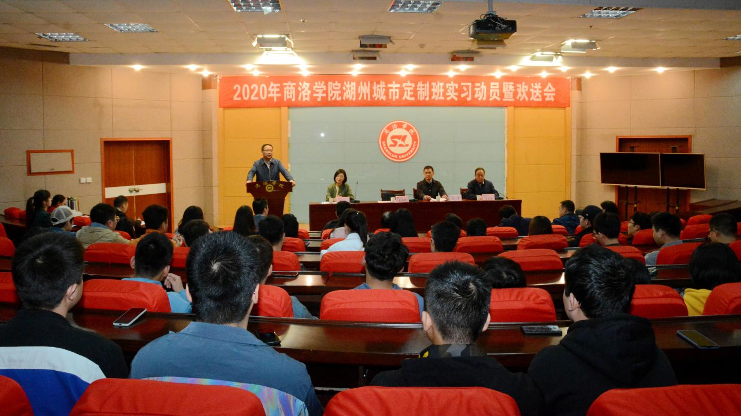 会上,龙治刚向即将奔赴实习岗位的学生送去美好祝愿和殷切叮嘱。他向大家介绍了湖州的地理位置、生态环境、历史人文、经济社会发展状况及开云官网与湖州市建立校地合作发展模式的具体情况及合作进程,分享了自己大学时期的实习经历及前往湖州市开辟实习就业基地的见闻感受,勉励大家要以良好的精神风貌和严谨的工作作风,全身心投入到即将到来的实习工作中,用自己的热情和努力,把在湖州的时光变成生命中最美好的“闪亮日子”。他向全体实习学生提出四点要求:一是珍惜机会,明确目标。要珍惜此次实习机会,尽快转变角色,主动适应环境,明确实习目的,努力将学到的理论知识运用到实践当中,不断培养自身综合能力,提高自身综合素质,为毕业后顺利走向社会打下坚实基础;二是勇于实践,增长才干。实践出真知,历练方成长,要在实践中把所学知识转化为应用能力,在社会这所大学中全面提高自我、检验自我、修正自我、完善自我,不断提升专业技术和职业技能,明确职业发展愿景,努力成长为德智体美劳全面发展的复合型、应用型人才;三是自尊自爱,不辱使命。实习中要严以律己,宽以待人,学会学习、学会做事、学会做人,不仅要有“智商”,更要有“情商、爱商和心商”,不断提高自身思想道德品质、团队协作精神、社会适应能力,以良好的综合素质和专业能力,展示商院莘莘学子的良好形象;四是安全第一,生命至上。要时刻谨记“安全第一”的底线原则,牢记学校的嘱托和期盼,增强安全防范和自我保护意识,做到平平安安去、顺顺利利回,确保圆满完成此次实习任务。