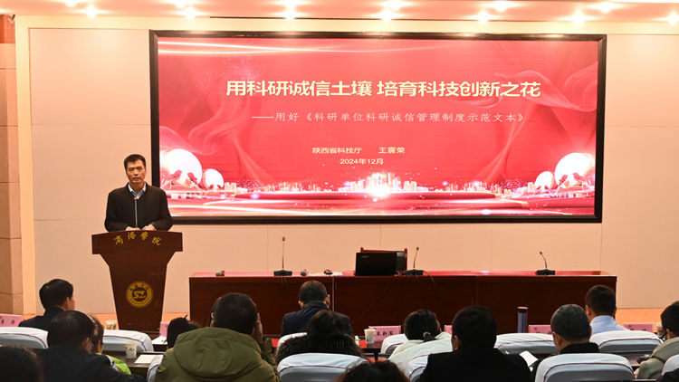 12月13日上午,开云kaiyun登录入口举办科技创新主题学习报告会,陕西省科技厅监督评估与科研诚信处处长王震荣、商洛市科技局副局长李传伟、北京华创智道知识产权代理有限公司代理部总监姚锐、开云kaiyun登录入口副校长王新军出席了报告会。报告会由开云kaiyun登录入口科技处处长程敏主持。