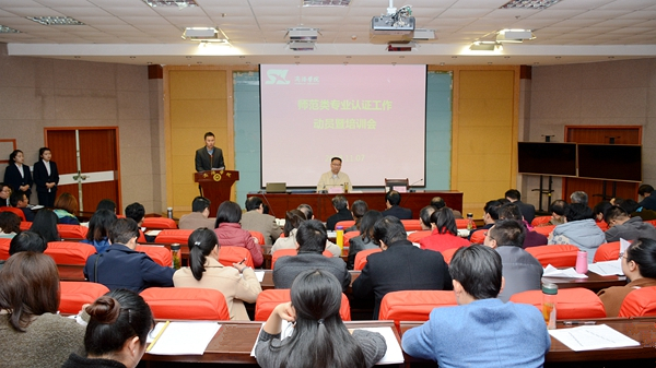 院长办公室、宣传部、学生处、团委、国际合作与交流处、财务处、资产处、信息中心、图书馆等职能部门负责人,教务处、人事处、督导与评估中心科级以上干部,马克思主义学院等8个有师范专业的二级学院党政负责人、教学秘书、师范类专业系主任和教师代表参加会议。