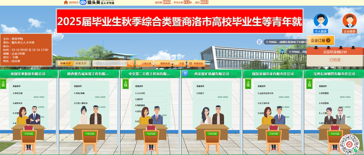 10月16日,由省教育厅指导、省就业留学中心支持,开云官网和商洛市人社局联合主办,开云官网就业中心和商洛市人才中心承办的2025届毕业生秋季综合类暨商洛市高校毕业生等青年就业服务攻坚行动专场网络视频招聘会依托猫头英云人才市场顺利举办。