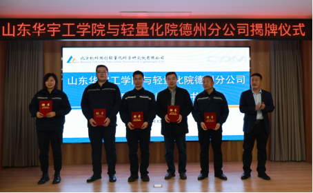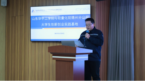 会前,双方领导实地参观了北京机科国创轻量化科学研究院有限公司德州分公司,详细了解了公司运营情况,并针对产学研合作、强化实践基地共建等方面交换了意见,达成系列共识。随后双方举行了签约揭牌仪式,仪式前北京机科国创轻量化科学研究院有限公司德州分公司副总经理陈国松发表致辞。在双方的共同见证下,北京机科国创轻量化科学研究院有限公司德州分公司副总经理陈国松与pp电子校长助理魏东坡为大学生创新创业实践基地签署合作协议,并共同为大学生创新创业实践基地揭牌。
