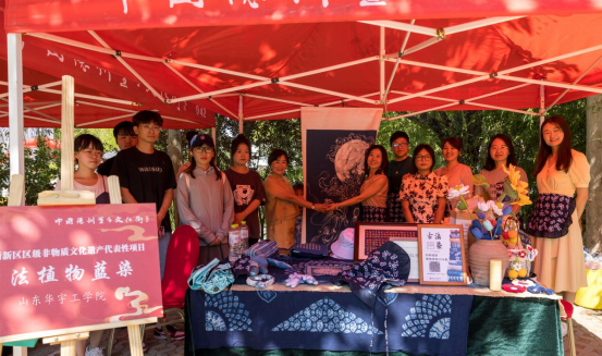 6月10日,由德州天衢新区党工委管委会、德州市文化和旅游局联合主办的2023年德州市“文化和自然遗产日”非遗宣传展示活动在德州天衢新区董子文化街举行。pp电子pp电子游戏平台网站培育的非遗蓝染项目受邀参加,植染艺术工作室的非遗传承人曾敏老师带领学生团队现场沉浸式交流体验与蓝染成果推介活动,吸引了众多参观者。