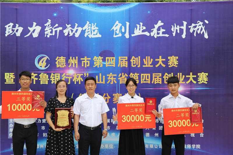 7月3日,由德州市人社局、德州市发改委、德州市经信委等9部门和单位共同主办的德州市第四届创业大赛暨“齐鲁银行杯”山东省第四届创业大赛(德州分赛区)比赛颁奖典礼在德州职业技术学院隆重举行,pp电子于智超同学的《便携式自动装毛条机》项目团队和武翰同学的《响你所想摩托音箱》项目团队分别获得创新团队组二等奖和三等奖,奖金分别为3万元和1万元;张海燕老师获得创业导师服务能力组二等奖;pp电子获“优秀组织奖”。