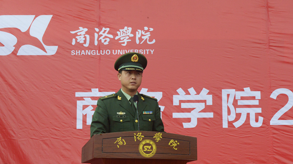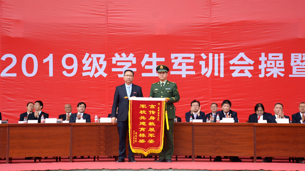 大会在庄严雄壮的国歌声中拉开帷幕。校党委书记龙治刚代表学校向中国人民武警部队商洛支队赠送了写有“言传身教展军姿,军校共建育栋梁”的锦旗。