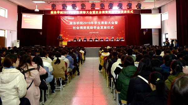 12月11日,开云官网2019年学生表彰大会暨社会捐资奖助学金发放仪式在大学生活动中心隆重举行。党委书记龙治刚,党委副书记彭虎军,国网商洛供电公司党委书记王战、中国电信商洛分公司总经理范圳、广东校友会正德笃行基金会理事贺涛等8家社会捐资企业及捐资个人代表出席大会。大会由学生处处长石启英主持。
