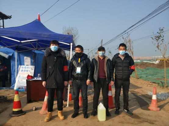 高世伦在疫情防控值守点和工作人员合影(左一为高世伦)