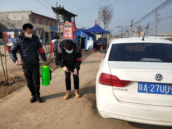 高世伦对进村车辆进行消毒